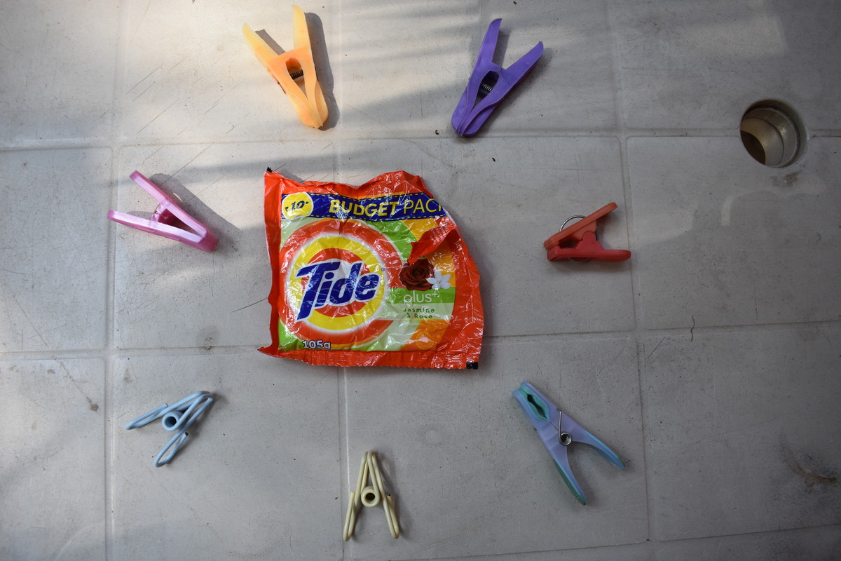 「HAPPY INTERNATIONAL」の屋上。カラっとしたガヤの空の下での洗濯は気持ちよかった。1~2時間でカッピカピに乾いてしまう。
